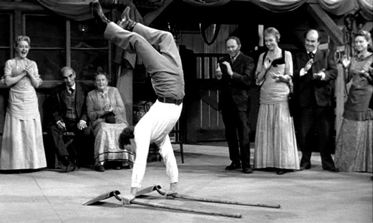 All the talk about gun violence of late stirred up a memory of a film from 1956 called The Fastest Gun Alive. Tim mentioned that he and his brother would laugh themselves silly watching the dancing with shovels scene in the Warner classic film—back when shooting was a sport of survival in our conjuring of the wild west. The video shows extreme athletic jumping around on stilt-like shovels. Entertainment in those carefree postwar years was often goofy.